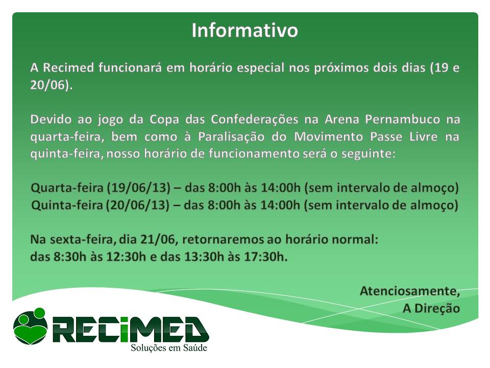 Por motivos de força maior, nosso horário de funcionamento nos próximos dias 19 e 20 [...]